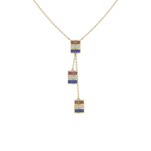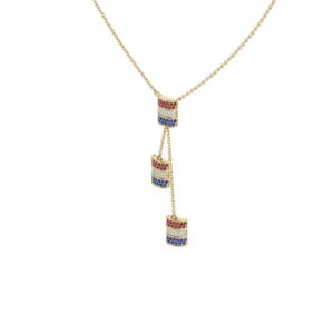 Mini Ruby, Diamond, Sapphire Barrel triple dangle necklace